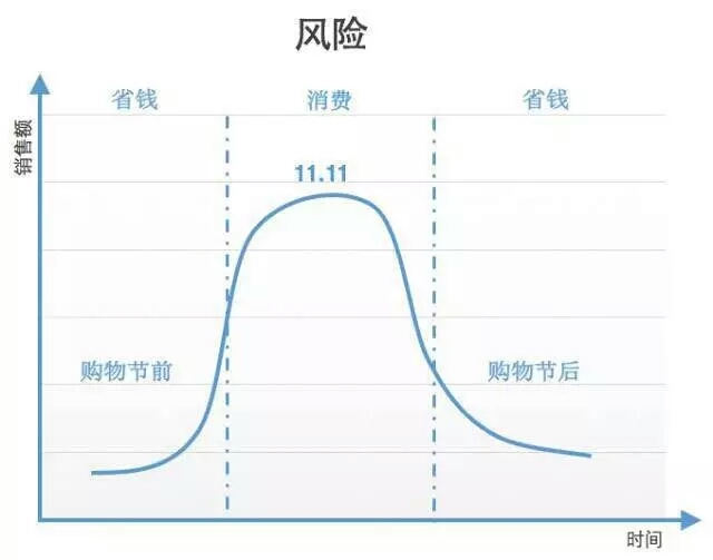 所谓“头肩”效应,具体来说就是消费者为了准备更多资金血拼一番,就会减少在活动前的消费(造成“左肩”效应)。另外,由于消费者在活动期间花销过多,所以在活动后会减少消费(造成“右肩”效应)。