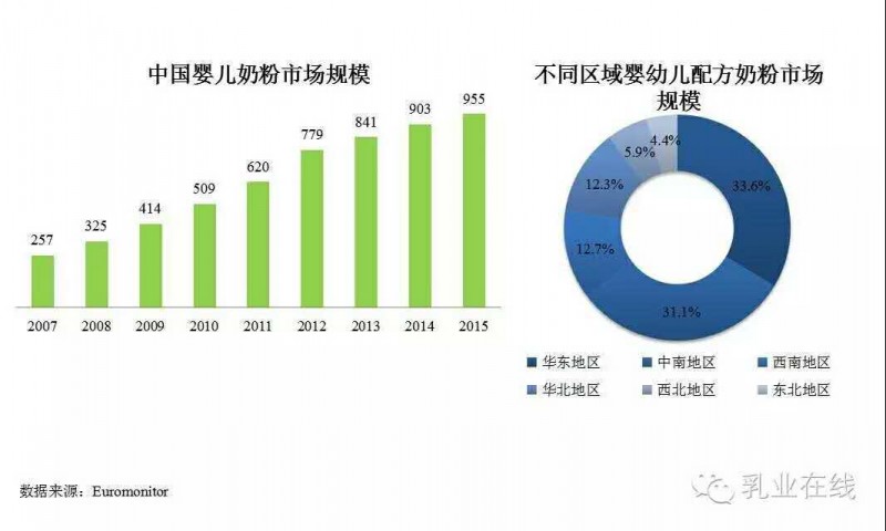 1.2据测算,2015年中国婴幼儿奶粉市场销售额约为955亿元,华东和中南地区为主要消费区域。