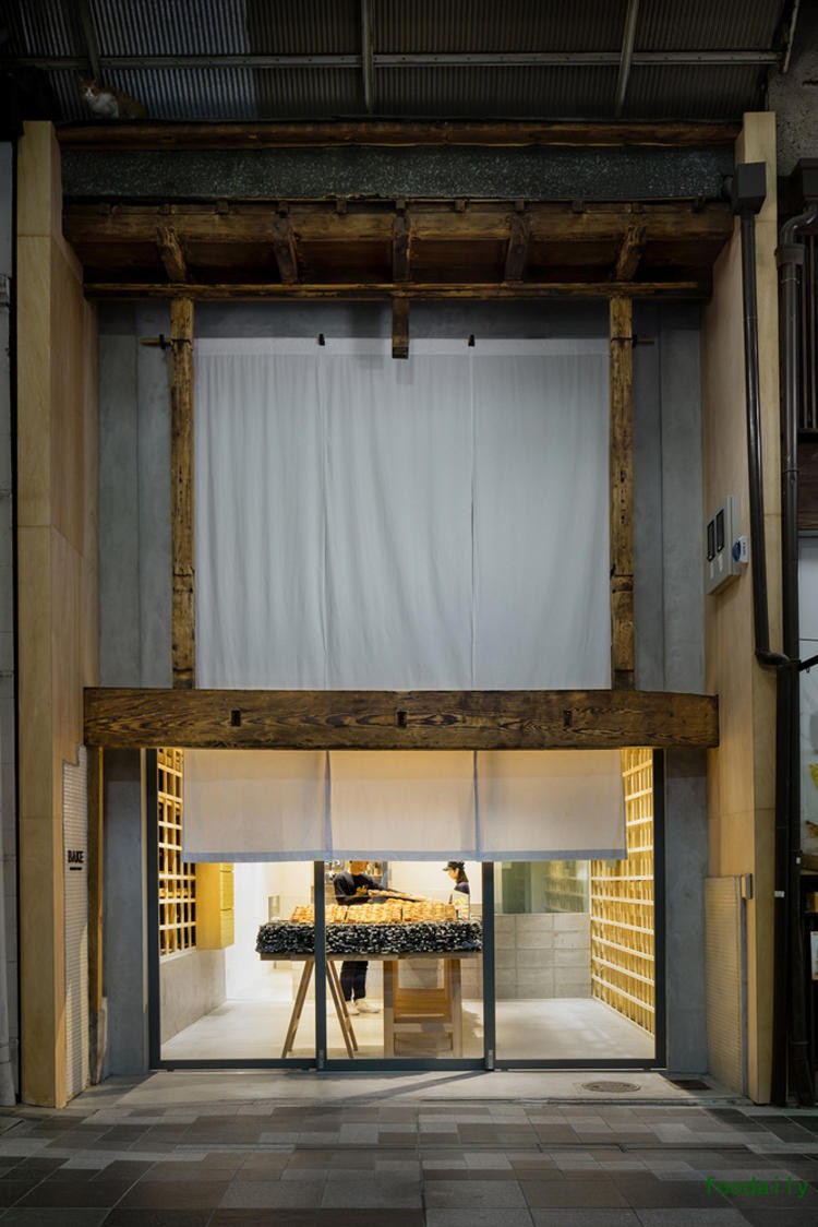 Bake 的京都新店在一栋古民家的老房子里,建筑本身处于一条商业街上,传统的木制门头搭配混凝土,历史感和现代感拿捏得恰到好处。