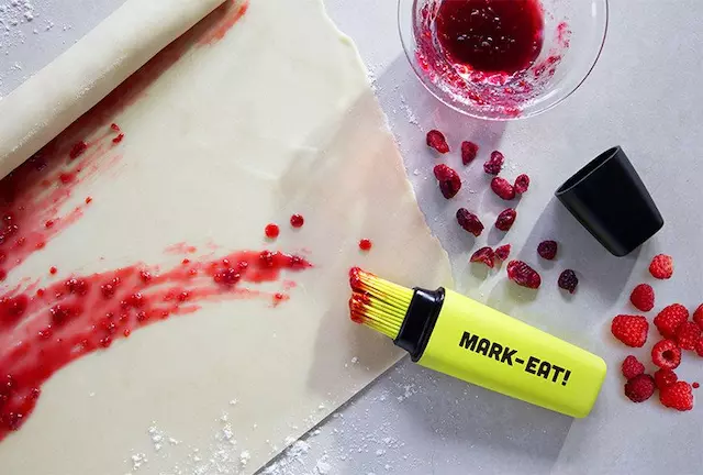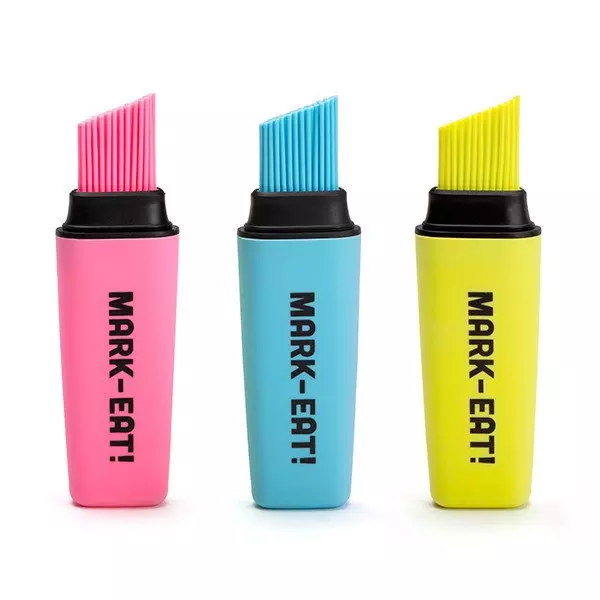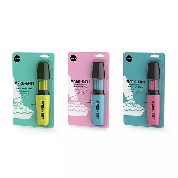 来自以色列的创意工作室 OTOTO 总能带来让你眼前一亮的产品,设计师 Lior Rokah-Kor 就对常用的厨具油刷进行了一次改造。Mark-Eat! 看上去就像是一支马克笔,使用时只要把刷头放入油中,轻挤笔身就能把油吸进去了,之后你就能像画画一样处理食材。这是它的购买链接,售价为 16 美元。