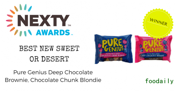 Pure Genius浓郁巧克力布朗尼和布朗蒂虽然看起来似乎不太健康,但恰恰相反,这款产品含有40%的鹰嘴豆,纤维素和蛋白质的含量都非常高,同时只含有11g的糖。无麸质、素食、不含坚果或大豆过敏原、非转基因、清真,所有的标签都彰显着这个产品的与众不同,是健康饮食的首选甜食。