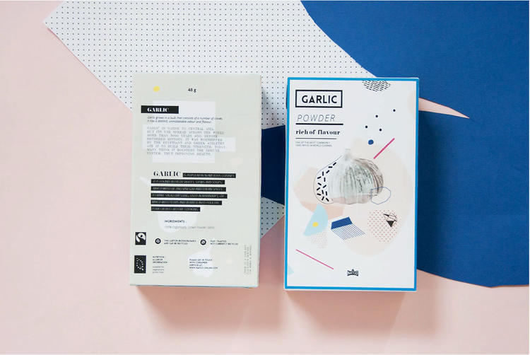 谁说香料包装只能土里土气没有特色?这套具有拼贴画风格的概念包装就是波兰设计师 Agata Jeziurska 为英国的印度食品品牌 Natco 打造的,本身就像是一张充满设计感的海报。大蒜、辣椒和月桂叶以各种形式出现在了包装的各个角落,盒子的左右两侧则是 Jeziurska 设计的原材料印象图,拼在一起之后就形成了一幅抽象画。用它们来装点厨房,似乎是个不错的选择。