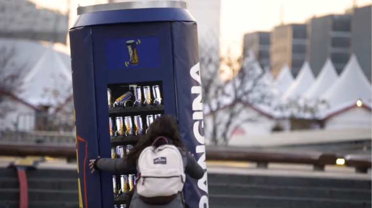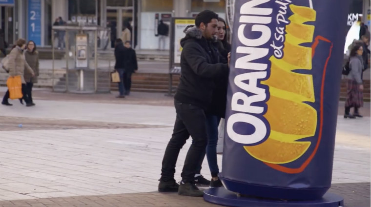 使用自动贩卖机时,最尴尬的就是你投了币,然而饮料却卡住了出不来。Orangina看准了这一点,在12月初的时候,在巴黎中心商务区和里尔欧洲车站的街头自动贩卖机上做了一点“手脚”,把这种衰的机率提高到了百分之百,没有人可以好好地从这些自动贩卖机上买饮料。