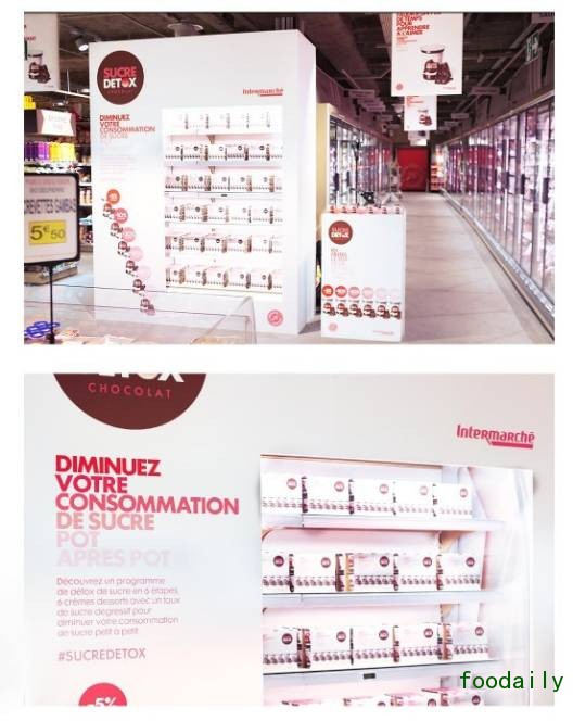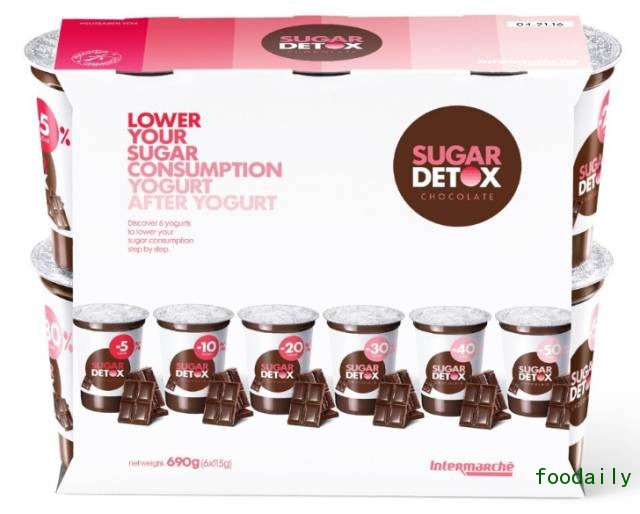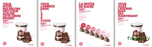 Intermarché希望能帮助消费者吃得更健康一点,引导那些爱好甜食的消费者减少糖的摄入。于是,2016年4月,他们推出了Sugar Detox品牌产品,为消费者定制了一个“逐步减糖计划”。Sugar Detox是一组巧克力酸奶产品,包含有6份不同糖含量的独立包装,每一份产品的糖含量从5%到50%依次递减。