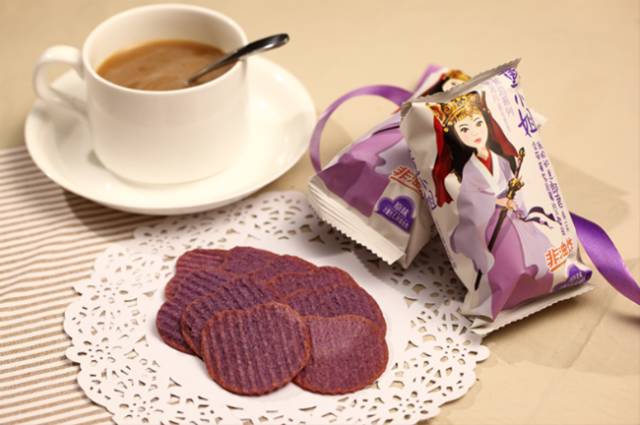 除了内容营销外,“董小姐”在包装和产品上也有独特的气质。不同于油炸薯片,焙烤类的薯片含油量在25%以下,更健康,形状设置成了特别的爱心形,色香味等都做了显著的提升,有十余种口味供选择,甚至还有命名为“紫霞仙子”的紫薯味薯片。