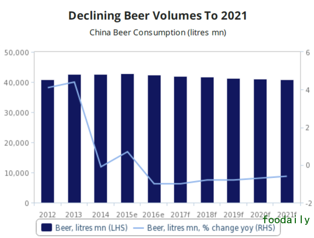 总之 竞争激烈、消费者品味不断变化、健康意识增强和经济放缓导致过去两年啤酒消费量逐步下降。