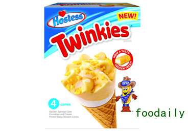 奶油蛋糕甜筒(Twinkies)—添加了细腻奶油蛋糕风味注心,并以黄金蛋糕屑作为顶料。一盒四支装,建议零售价$4.49。