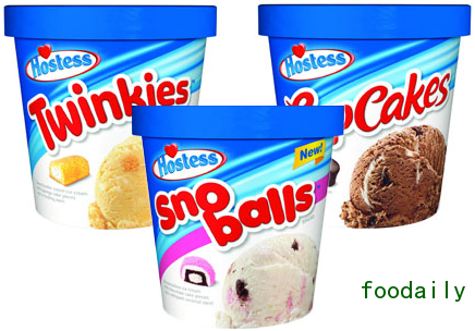 Hostess品牌冰激凌有三种形式:Twinkies, CupCakes and Sno Balls.这些冰激凌有48盎司纸盒装,售价$5.99,也有售价为 $2.99的品脱杯.