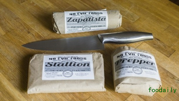 北卡罗莱纳州的No Evil Foods公司有三个产品:肉丝替代品“The Prepper”、德国香肠替代品“The Stallion”和西班牙腊肠替代品“El Zapatista”。这三个产品都使用优质小麦蛋白将所有原料有机结合在一起,从而得到类似于肉类的纹理,每份含有大约20克蛋白质。