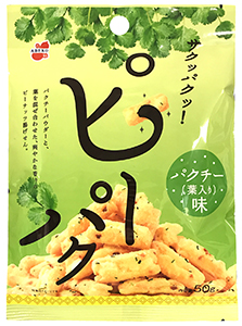 位于新潟县小千谷市的米菓制造会社阿部幸製菓在各种民族料理流行的背景下,将于5月22日开始面向全日本发售添加香菜的油炸仙贝-“Pipaku 香菜味”。