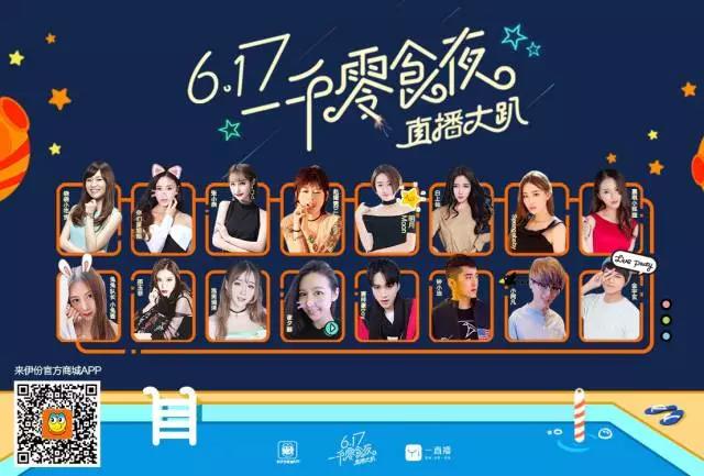 在618前夜,来伊份邀请了40位人气主播在自有App和一直播平台进行直播,打造#一千零食夜#直播泳装零食狂欢趴。