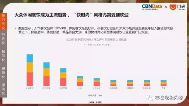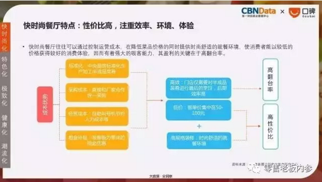 报告认为,大众休闲餐饮成为主流。快时尚餐厅流行。什么是真正的快时尚餐厅呢?有四个要素不可少。