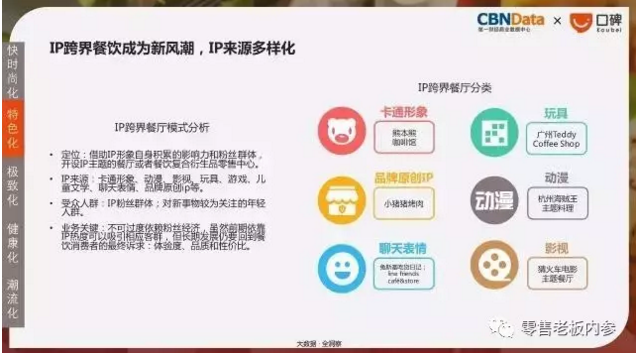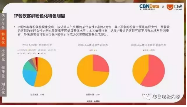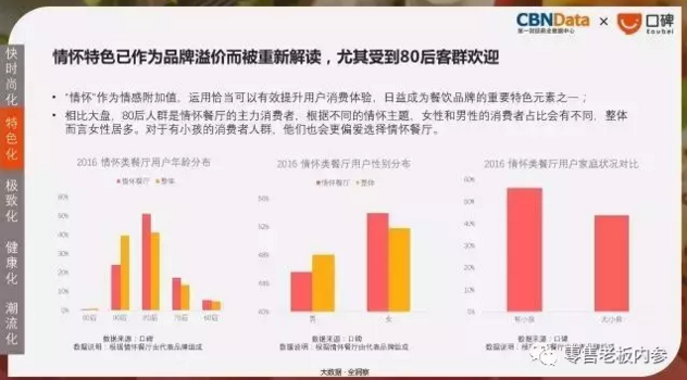 特色化具体还可以分为餐饮的区域化,情怀化和IP化。