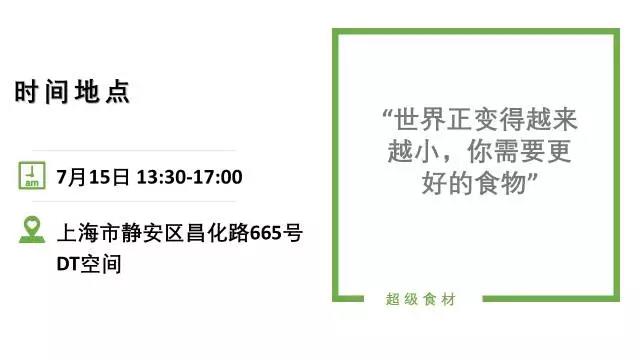 TechGastronomy美食科技传播机构联手Foodaily每日食品网将于7月15日在上海DT空间举办线下分享论坛,以“超级食材”为主题,将从烹饪,可持续烹饪设备,健康生活方式,美食场景营销,产品创新等五个部分,深刻探讨更优化的超级食物链。
