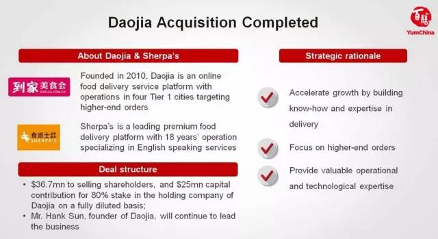 “首要原因是,我们现有品牌的外卖业务在高速增长,我们希望在这一重要的增长市场上获得更多技能和经验。”他说,“其次,到家美食会专注于更为高端的市场, 我们希望在这一领域提高专业水平。”