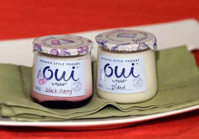 Yoplait生产Oui酸奶时会将原料成分倒入单独的玻璃容器中发酵8个小时,由此生产出一种具有浓厚和奶油质感的酸奶。刚性玻璃瓶有助于保持酸奶的完整性,因此可以避免因需要保持其稳定性而添加玉米淀粉或明胶。