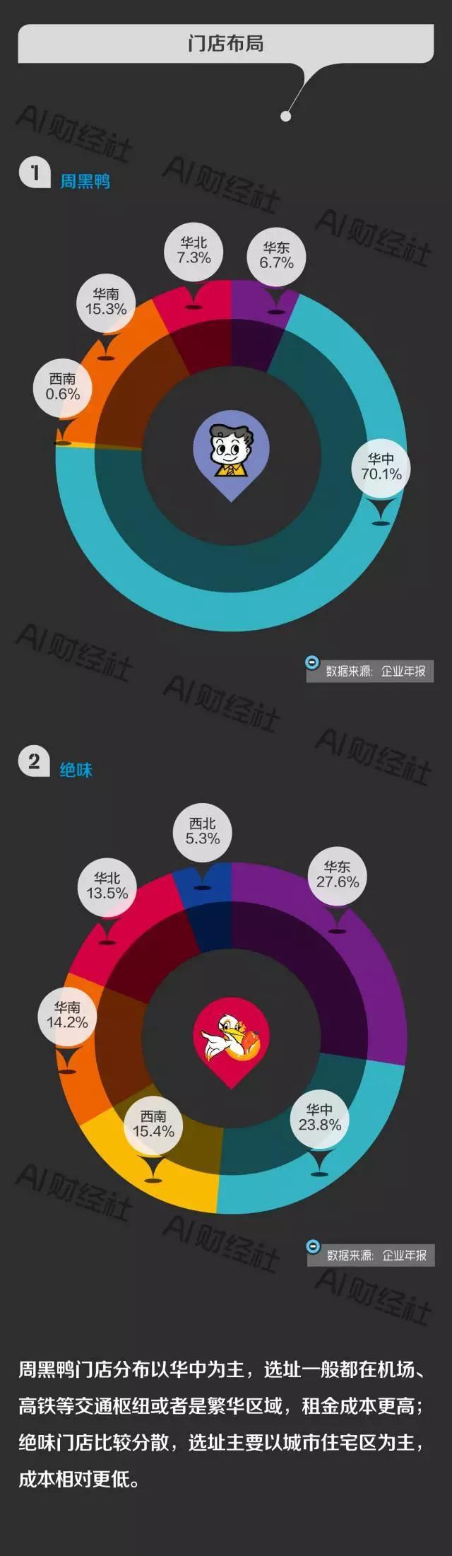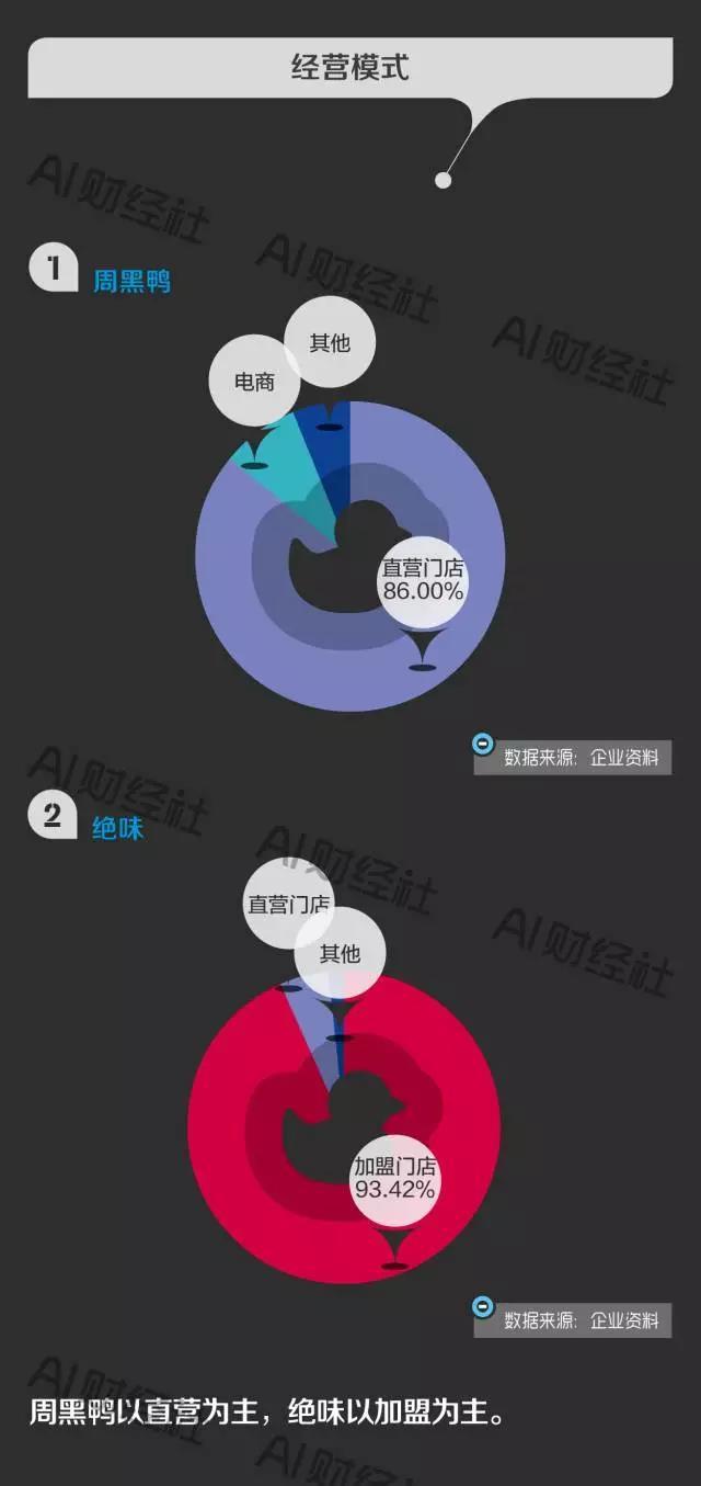 周黑鸭选择了直营,让周黑鸭拥有了定价权的同时和忠诚的用户,同时也保证了利润。而绝味得加盟模式,让绝味能够在短时间疯狂扩张,抢占了更多的市场份额,降低了经营风险。