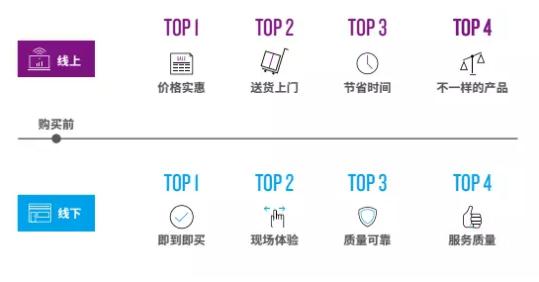 中国的网络购物者看重“优质产品”与“特价优惠”,在乎商品是否物美价廉,而线下消费者则讲求服务与体验。
