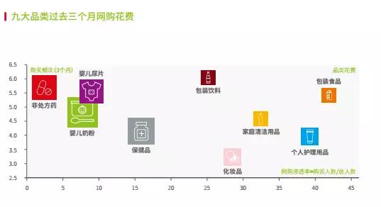 尼尔森的统计数据显示这些网络购物者最大的支出主要是孕妇与婴儿产品,其次就是保健品与药物。