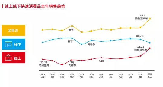 根据尼尔森最新的零售监测资料与中国消费者信心调查显示,线上快消品尽管带动了整体销售额增长近29%,但线下渠道销量仍占全国快消品销售额的74%之多。