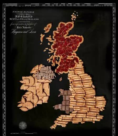 餐视君:今天看到有人竟然把食物做成了地图。这也太有创意了吧,据说是两位周游过世界的艺术家们的奇思妙想。