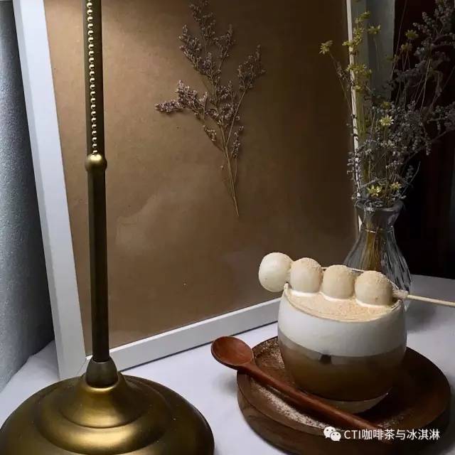 这就是爆人气的团子拿铁啦!四颗可爱的小团子是用韩国非常传统的一种饮品混入面粉做成的,再加入冰牛奶,喝起来的味道有点像麦茶呢~