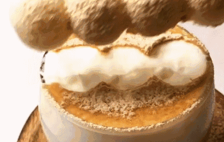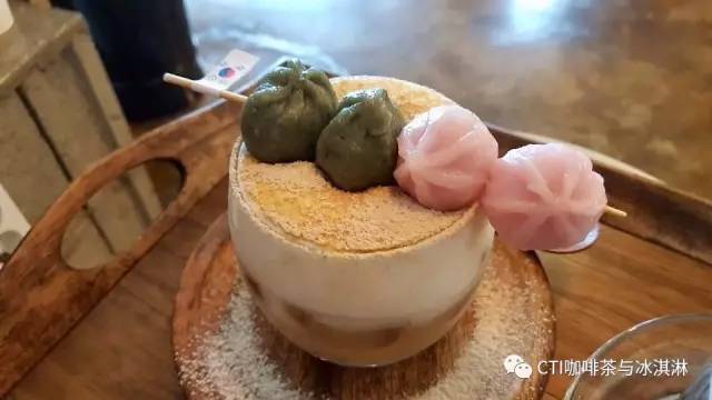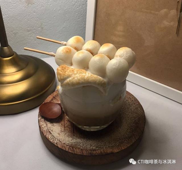 团子下的拿铁上面还用焦糖铺在了奶泡上,并且用喷枪考的微焦。之后又铺了厚厚一层甜而不腻的奶油,这款甜品饮料让人想着就口水滴下来!