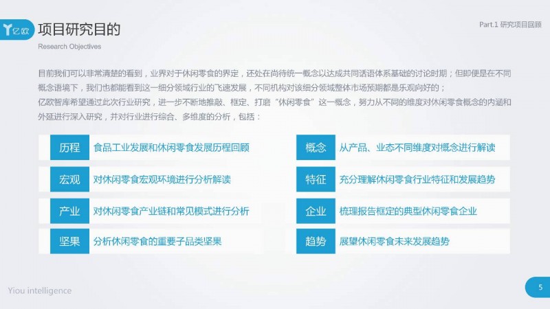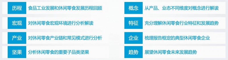 亿欧智库此次推出《2017中国休闲零食行业研究报告》(以下简称报告),希望能够填补该领域严肃、系统、专业的行业研究内容的空缺,对“休闲零食”概念范畴进行确定,给出一个可供行业讨论的话语基础,并努力从行业发展历程、宏观环境、行业特征、产业链构成及模式、典型企业梳理等不同的维度对休闲零食行业展开深入研究,进行综合、全面的分析。(报告具体分析维度见下图)