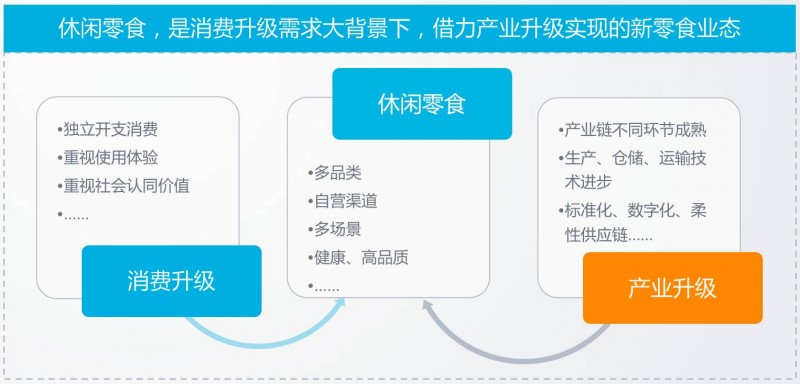 从业态层面看,休闲零食业态的本质,是消费升级需求大背景下,借力产业升级实现的新零食业态。