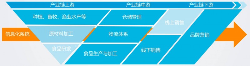 休闲零食行业产业链由上、中、下游三部分构成,信息化系统全产业链贯穿保障企业信息化运营、实现各环节无缝对接、全链把控。