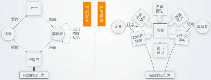3. 产业链下游销售渠道与品牌营销呈现高度互融趋势,线上线下结合为消费者提供多触点、便捷化的多场景购物解决方案,优质内容支持下的品牌营销针对“场景-品类-产品”的消费者休闲零食消费路径,促进销售的同时,还催生了输出价值观、打造社交货币等新玩法。