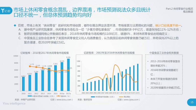 虽然业界对于休闲零食的界定,还处在尚待统一概念以达成共同话语体系基础的讨论时期;但即便是在不同概念语境下,我们也都能看到这一细分领域行业的飞速发展,不同机构对该细分领域整体市场预期都是乐观向好的。