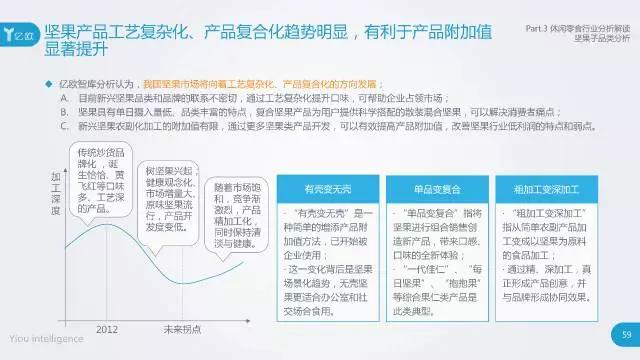 坚果子品类分析 - 亿欧智库认为,天生具有休闲零食属性的坚果子品类,其市场因技术门槛低等因素而发展空间大;工艺复杂化、产品复合化趋势将显著提升产品附加值;目前该领域尚不存在强势品牌;贡献市场增量的外来树生坚果因原材料依赖进口而成本较高,亟待本土化。