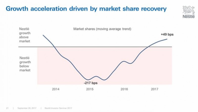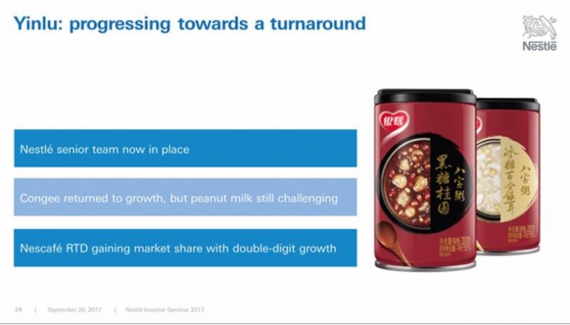 “我们(的管理层)从持股少数的合资伙伴团队转变为雀巢团队,这使得我们的合作更畅顺,执行得更好。另外,我们也在努力恢复产品的相关性。”她在会上说。