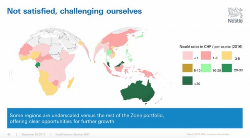 在此前的发言中,雀巢CEO施奈德谈及新兴市场时曾表示,新兴市场的盈利能力高于成熟市场。“无论是现在还是十年后,押注新兴市场对我们这家公司来说都是稳赢不赔的(safe bet)。”他说。