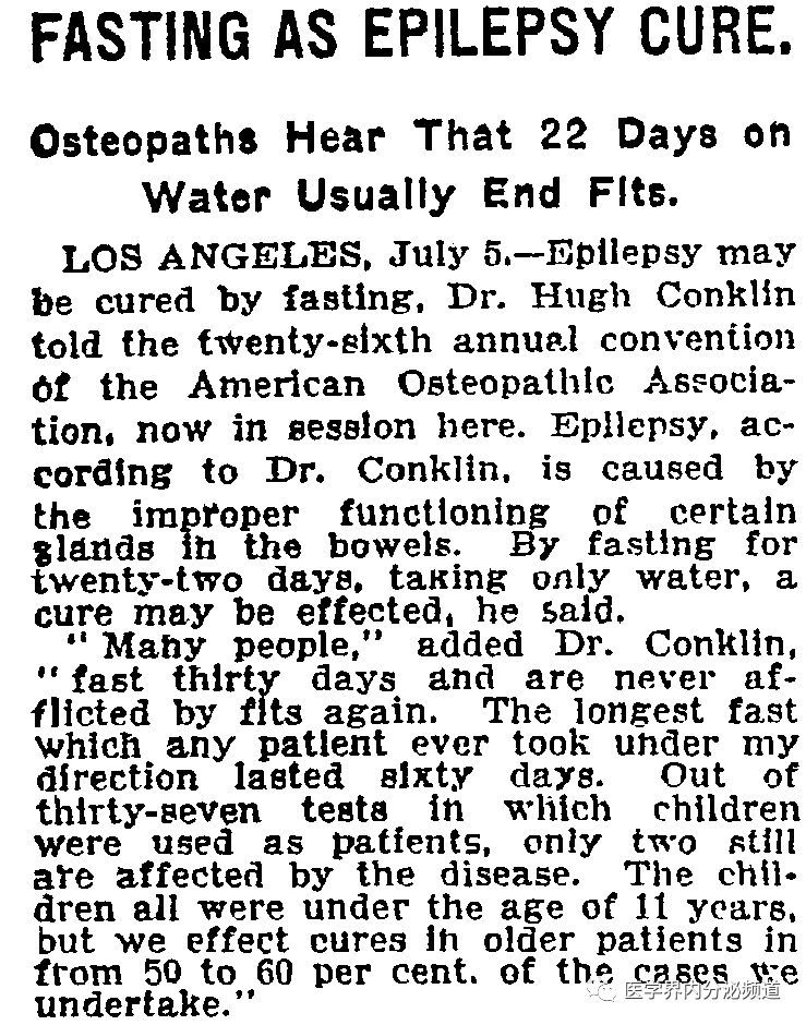 ▲纽约时报1922年关于”限制碳水化合物摄入治疗癫痫病“的报道| 图片来源:医学内分泌频道