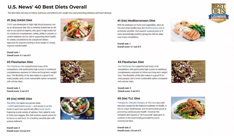 其实除了生酮饮食,其他新兴受捧的饮食方式包括Dash 饮食、地中海饮食、5:2轻断食等等,2018年初,《美国新闻与世界报道》给出了年度最佳饮食排行榜,Dash 饮食和地中海饮食,由于其可操作性强、营养均衡被并列为最有益心脏健康的饮食和最佳健康饮食。