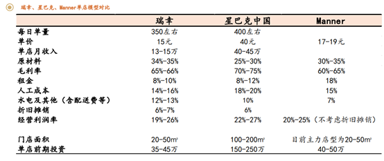 开店是现制饮品触达消费者的主要方式,开店也是决定商业模式好坏的关键因素。但是在开店上,奈雪面临进退两难的局面。奈雪学习的是星巴克的开店模式,旨在为消费者提供和打造茶饮第三空间,因此在店铺面积上,奈雪的店铺面积可以说是业内最大的了。传统奈雪茶饮店的面积一般在200-250平米,其中一半的空间被打造成为消费者准备的社交场所。店里除了茶饮之外,还提供现制的欧包产品。而欧包的现场烘焙过程使奈雪的传统店不得不被分类为餐饮连锁,并必须配备排烟管道,从而大幅抬高了奈雪选址的门槛,降低了开店的灵活度。为此奈雪又推出了奈雪Pro的店铺模式,该模式下,不再提供现场欧包烘焙,转由中央厨房供应,这使得奈雪的开店选址有了更大的灵活性,奈雪Pro店也能进入更多的商务写字楼。以茶饮+奶茶为特色的奈雪,欧包收入一直占奈雪总营收的四分之一左右,如果失去了现场制作欧包这一特色的话,消费者是否买账尚有待观察。虽然奈雪在开店模式上,进行一定的调整,但依然没有放弃星巴克式第三空间的开店理念,有趣的是,星巴克对自己第三空间的理念都不再坚持了。早在2020年,星巴克就提出到2030年将全球门店扩张到5.5万家,并着重在新形式门店的扩张上,特别是面积更小的数字化门店和开在路边的Drive-through快速门店。近日,有外媒报道,韩国星巴克正与英国一汽车品牌MINI合作并创造出了最小的移动星巴克咖啡厅。瑞幸可以说是咖啡消费去场景化的头号玩家了,瑞幸把咖啡厅开到了学校、CBD、商圈、科技园、小区、商业街的转角,你想买的时候随处都有。再加上利用互联网和发达的配送体系,让消费者打破了咖啡又贵又不方便的刻板印象。在中国市场上活的最好的的两家咖啡企业,一个是以星巴克为代表的第三空间理念下的大店模式,一种是以瑞幸这种极具效率、以极致性价比取胜的小店模式。通过对比二者的单店模型可以发现,瑞幸的单店月收入13-15万元,经营利润按20%计算,投资一家瑞幸咖啡可在2年内收回成本,而15元的客单价可以让瑞幸有着广阔的下沉空间,虽然目前星巴克在中国的市占率依然领先,但瑞幸模式显然更有市场。