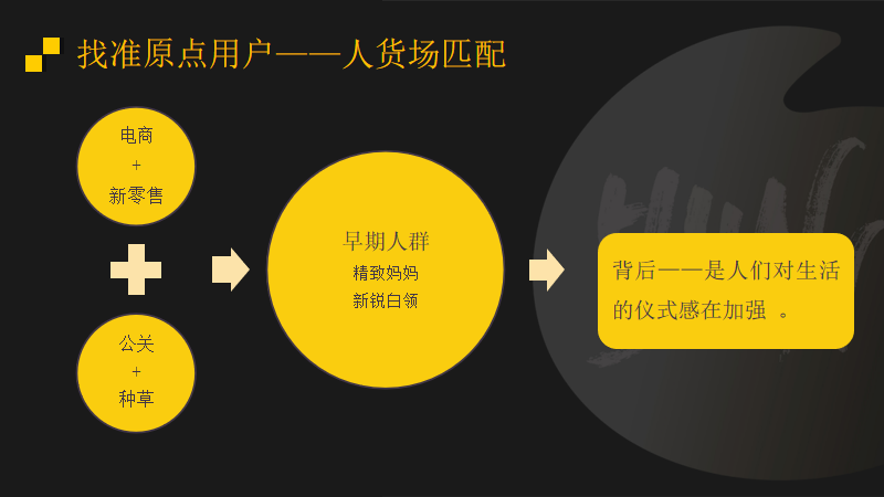 早期的人货场匹配是根本,匹配度高,那么传播与渠道效率会很高,成本就会降低。如果相反,很难做并且效率低,那可能是产品定义、人群或是渠道找错了。