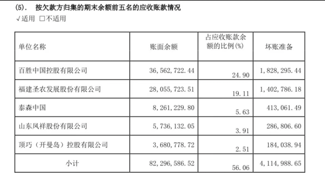 根据宝立食品的半年报显示,宝立食品2022年上半年公司实现营收9.11亿元,同比增长26.07%;归属于上市公司股东净利润9276.39万元,同比下降3.86%。旗下的厨房阿芬(主要是空刻意面)上半年营收4亿元,净利润2084万元。从上半年宝立食品的应收款来看,排名前五的分别是百胜中国、圣农、泰森中国、山东凤祥和德克士。