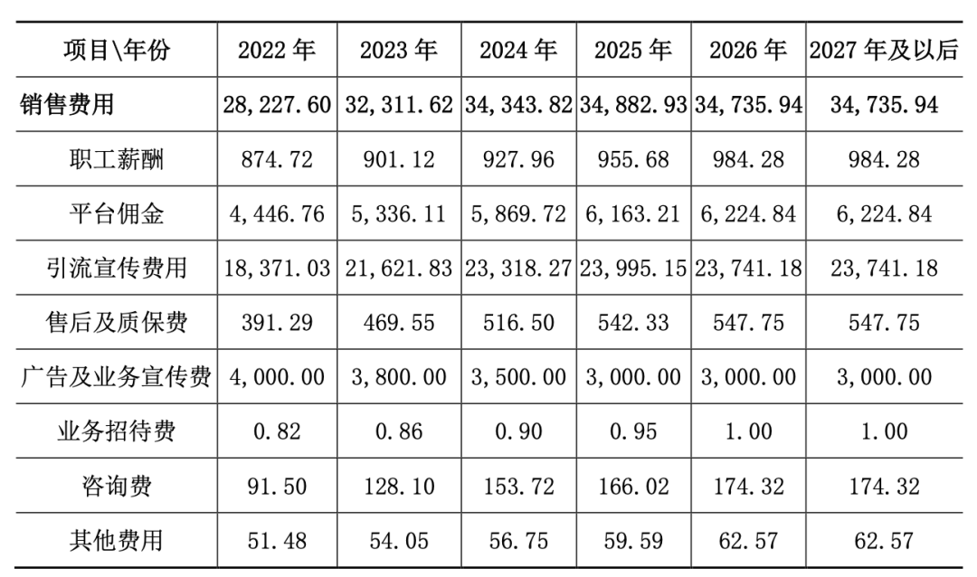 销售费用的预估主要集中在平台佣金和平台上的广告宣传等。