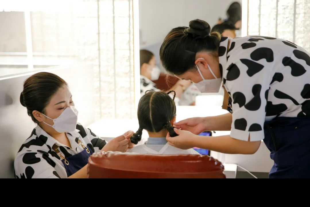 于是,小放牛顺势推出了独有服务——“免费编小辫”,而且不是店里的客人也给编!果然推出来之后非常受欢迎,顾客每天得拿号排队才能编上。为此小放牛在等位区配备了三位工作人员专门负责编发,周六日配了六位都忙不过来,经常出现顾客吃完饭了还没编上的情况。