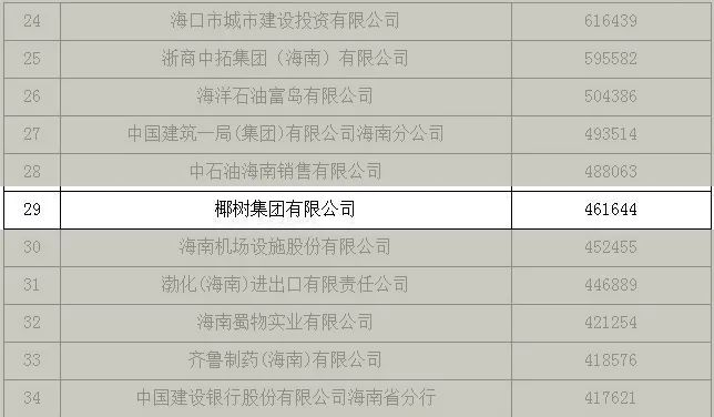 值得注意的是,椰树集团有限公司以46.1644亿营收,位列总榜单的第29位,营收业绩再创历史新高。