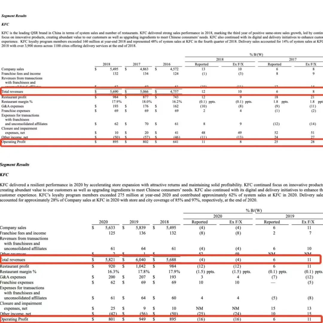 肯德基在中国的母公司百胜中国财报显示,在疫情之前,肯德基的营收和经营利润已经出现增长放缓。2017年-2019年,肯德基的营收增速分别为6%、12%、6%,与之对应的经营利润同比增速由25%下滑至6%。