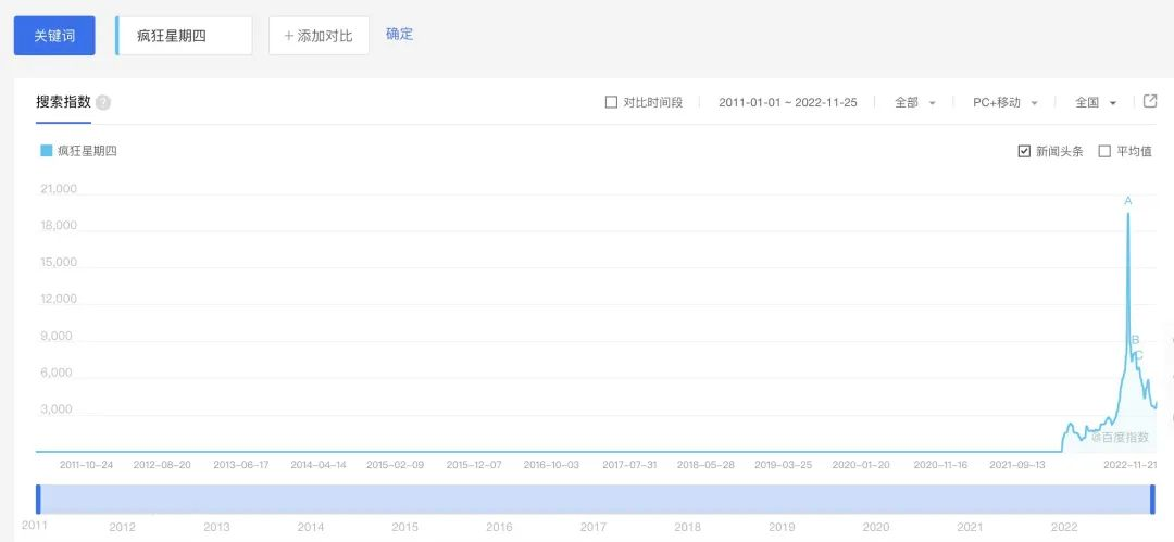 不过,据吴晓波频道报道,疯狂星期四此前话题关注度非常低,该话题彻底被点爆是在今年夏天。