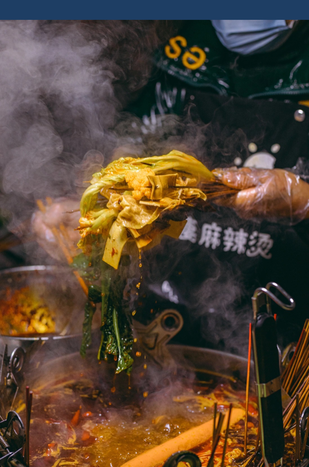在成都,夜宵被称为「鬼饮食」。得益于肥沃的成都平原,群山环绕的锦官城自古就是远离外界干扰的天府之国。当地人「好安逸」的性格滋养了这里的饮食文化。卖「鬼饮食」的车从二更时便开始出现于街头巷尾,有的一直要卖到第二天早上黎明前。不同于广东的一碗二碟,成都人夜里吃串串、吃老妈蹄花。