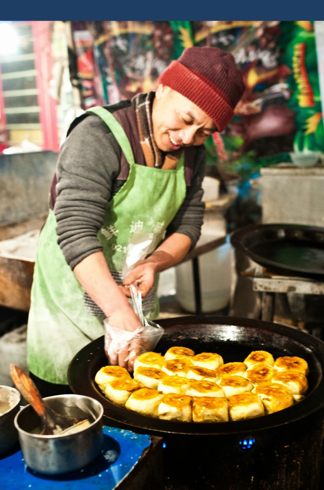 上海张江夜市内售卖牛肉包子的摊位。© Fiona Reilly