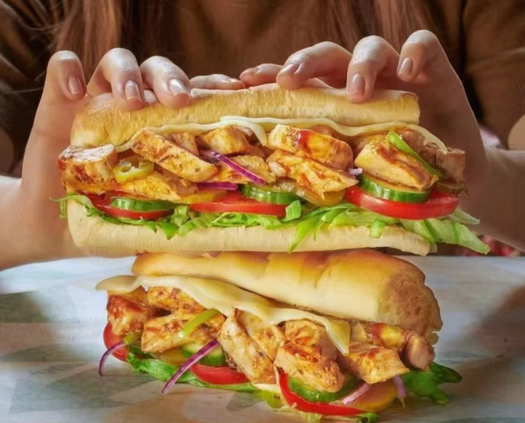 正如其最初的名字一样,赛百味以制作12英寸和6英寸的长条三明治而闻名,外形如同潜水艇,主打低卡健康,与当时麦当劳等高热量、高脂肪的美国传统快餐形成差异化竞争。与此同时,赛百味还首创开放式厨房的理念,同时配合低价策略和加盟模式实现快速扩张。