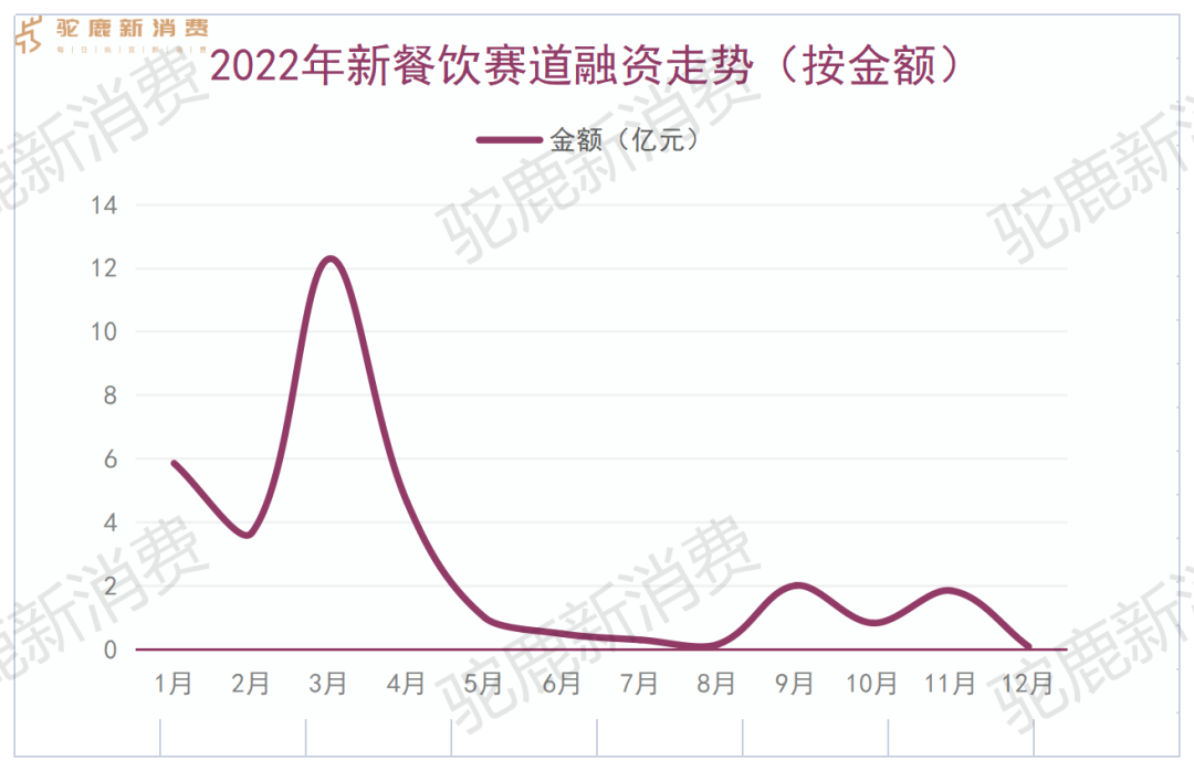 若按照融资金额比较,3月份为新餐饮赛道融资高峰,单月有12.3亿元融资流入新餐饮赛道,8月份则新餐饮赛道融资低谷,单月仅有0.16亿元进入新餐饮赛道。平均每月进入新餐饮赛道的热钱约为2.77亿元。