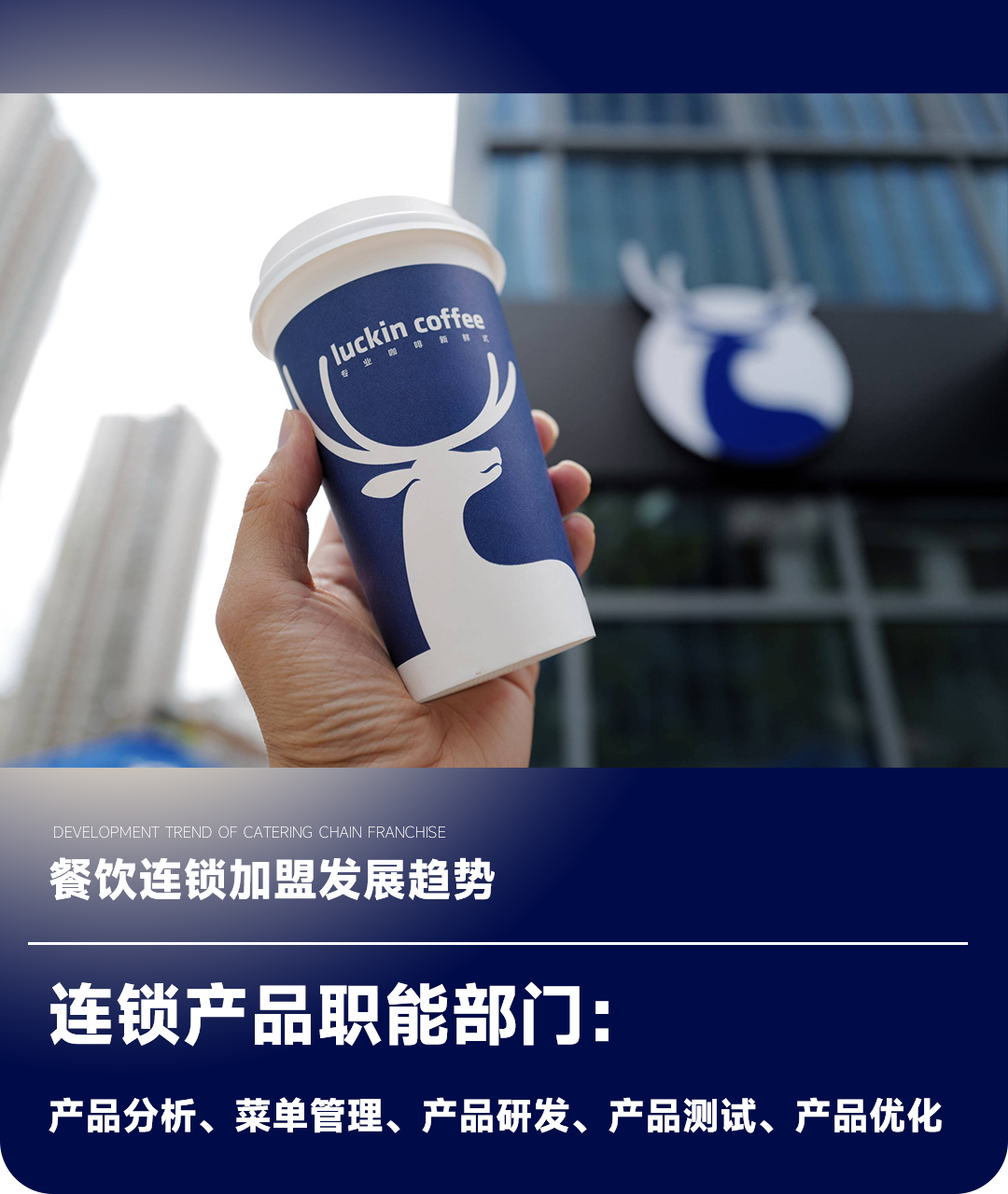 我们来看看瑞幸产品职能部门的五大小组和流程:产品分析、菜单管理、产品研发、产品测试、产品优化。